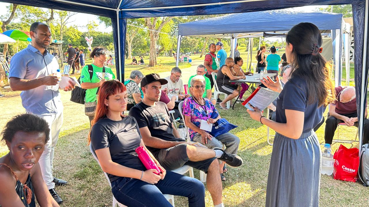 Sob tendas montadas no espaço público, o atendimento começou com a aferição de sinais vitais, como pressão arterial, frequência cardíaca, glicemia e saturação de oxigênio. Depois, os participantes seguiram para consulta médica e orientações individualizadas, de acordo com os dados levantados na triagem.